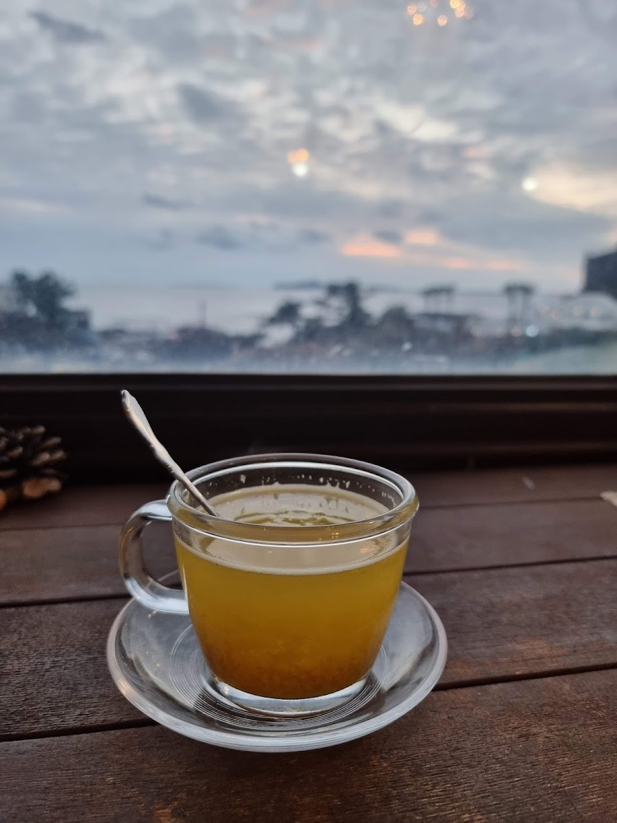 The delightful menu features a variety of drinks, perfect for complementing your foot bath. Imagine sipping on a refreshing beverage while gazing out at the stunning views of Jeju Island—a true feast for the senses. And to elevate your experience, customers rave about the delightful waffle ice cream and croissant toast that often accompany your order, generously offered by the owner as a special treat.